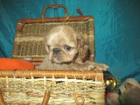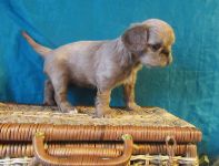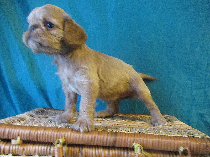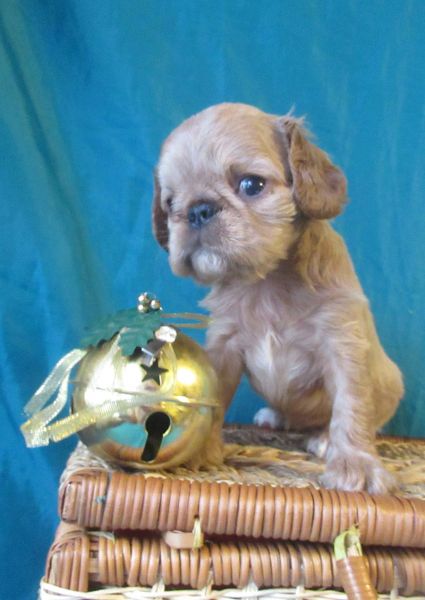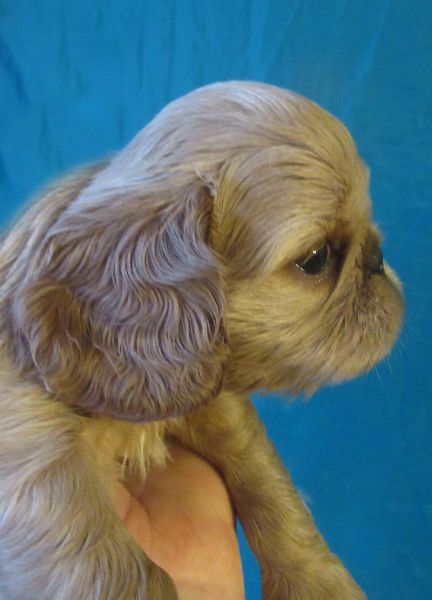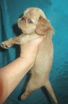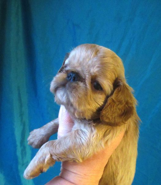 Девочка рубиновая 3, "шилипопая" егоза.) Шустрая, инициативная,любопытная , и при том абсолютно ручная. Не боится ничего, не шума, не высоты, не лая взрослых собак.Очень хорошо анатомически сложена, великолепная голова, очень выразительная. Шоу - перспектива очень желательно. Использует пеленки и лоток по назначению, может за себя постоять, гоняет братьев, если что не так.)
